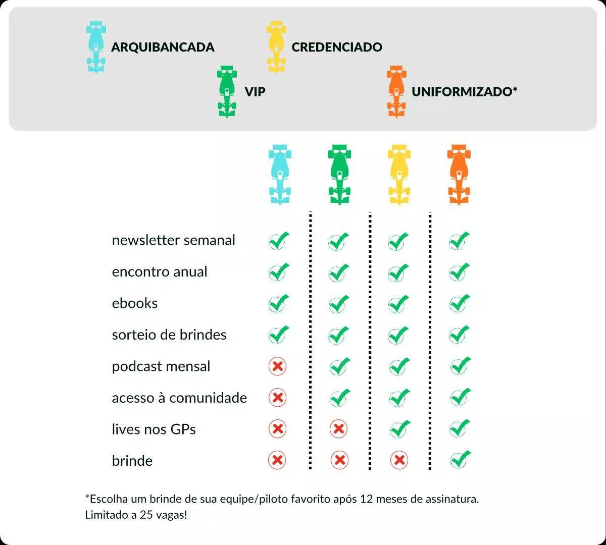 Quanto maior o nível de assinatura, mais perto você vai chegando do paddock da F1